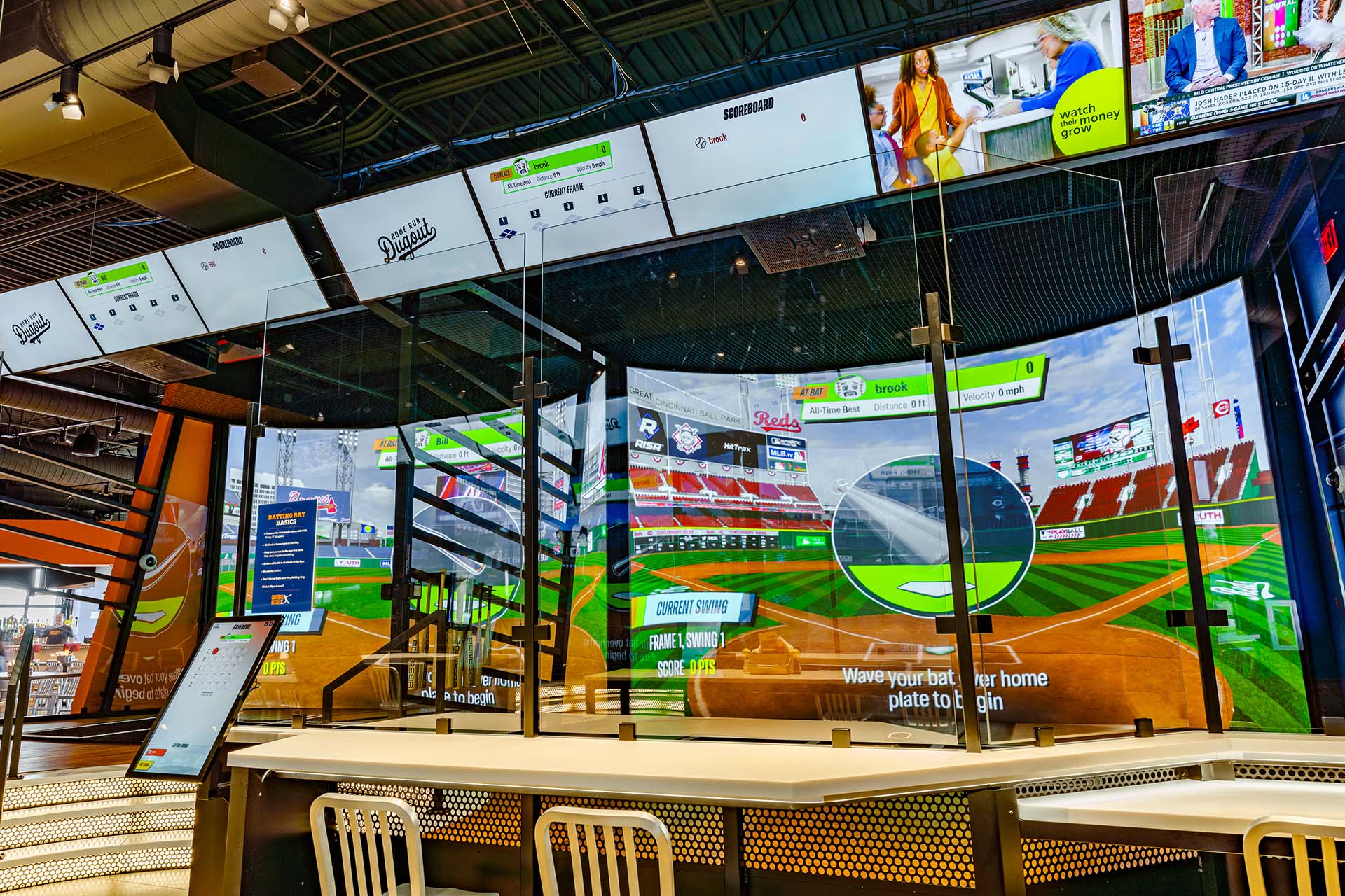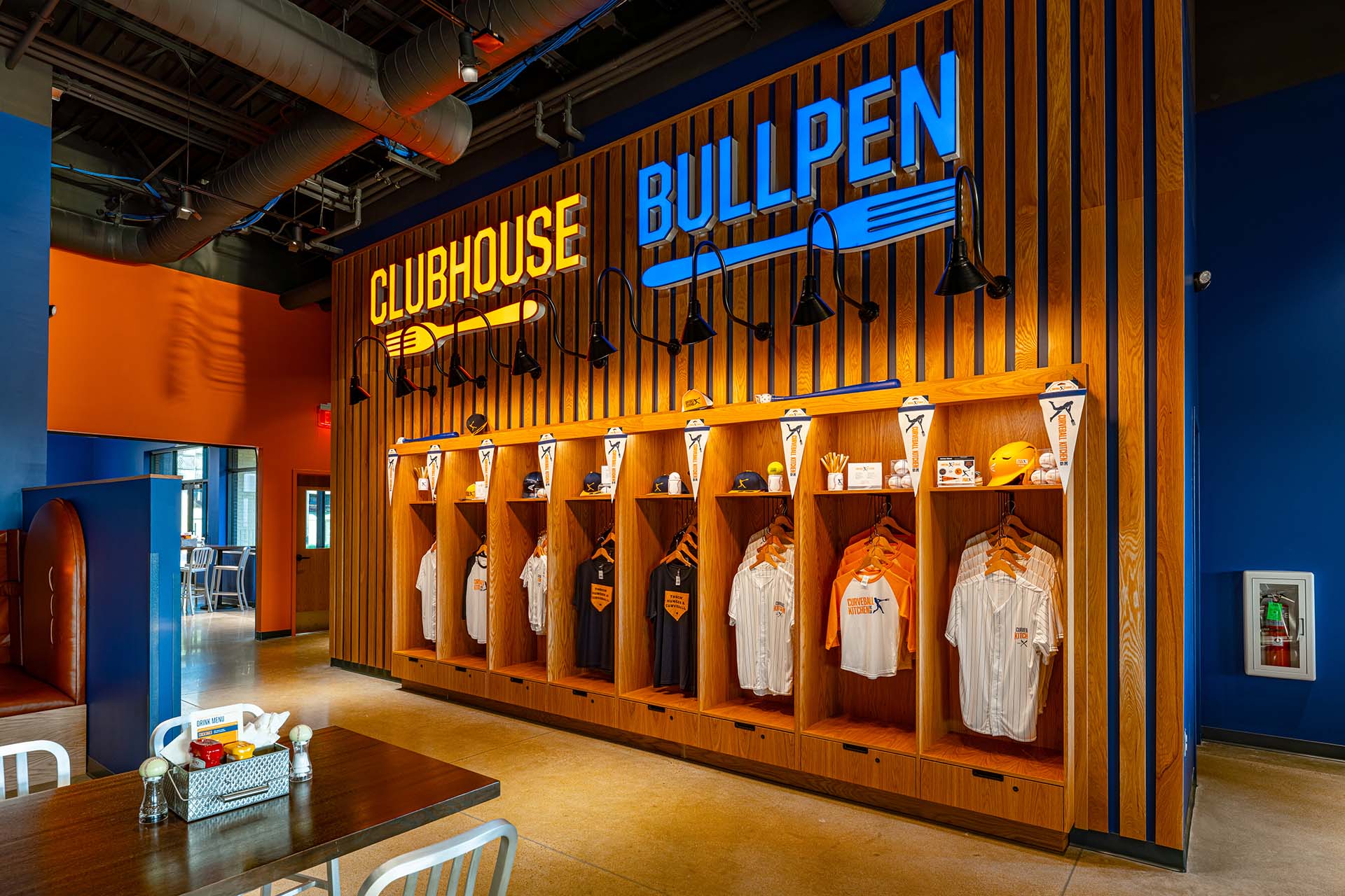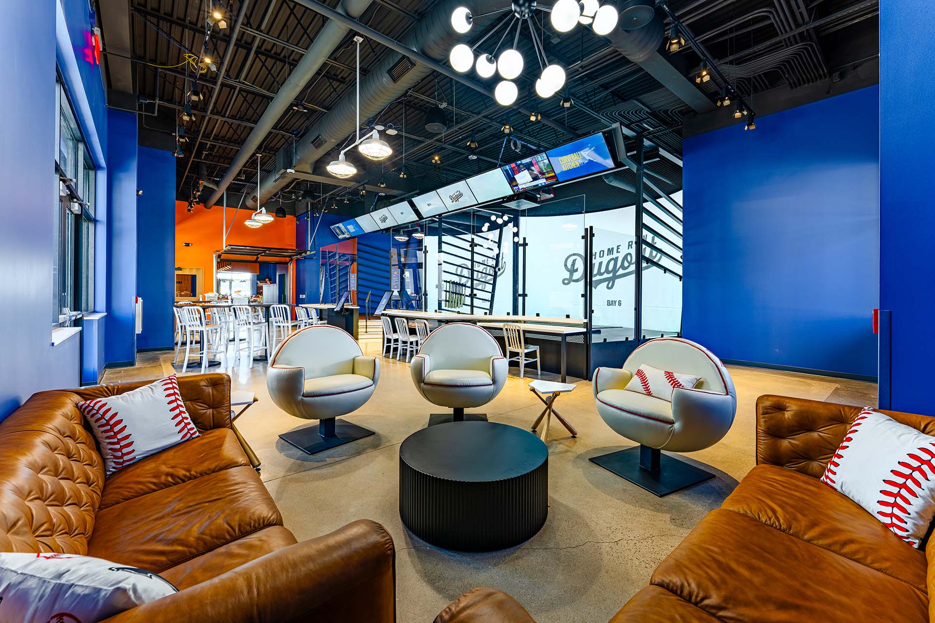 Harwood ensured every aspect of the design met the unique demands of Curveball Kitchen. The mechanical and electrical systems were optimized for efficiency and reliability, supporting the high-definition baseball simulators, kitchen operations, and the bar. Sophisticated A/V systems and head equipment were backed by a central UPS, ensuring uninterrupted operation.